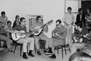 La otra instantánea pertenece a la Rondalla de los Salesianos. Está fechada en 1967 y fue tomada en el patio del Colegio del Carmen. Constituida por jóvenes del Centro, gozó de una extraordinaria simpatía, no sólo en la Comunidad Salesiana, sino también en toda la población, siendo invitada para numerosos actos, amenizando con sus canciones y su alegría muchas jornadas festivas de la ciudad.