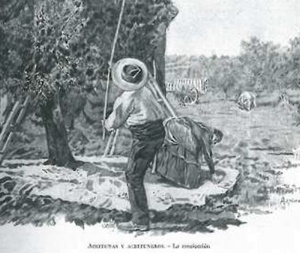 Empezamos este capítulo, en el mes de Octubre, precisamente uno de los meses más importantes para los católicos de Écija, pues celebramos el mes del Rosario, en el que tanta importancia tuvo el dominico ecijano Fray José María Peralta, y como quiera que ya mismo empezamos la recogida de aceitunas (el que tenga olivares, que yo solo tengo las envasadas en latas que compro o las que me regalan aliñadas, rayadas, partidas, etc.), sin olvidar que Écija, era la población mundial del aceite en los siglos anteriores, con más de doscientos molinos, encuentro un artículo, precioso, editado en La Ilustración Artística de 23 de Mayo de 1904, número 1.169, titulado Aceitunas y aceituneros de J. Gestoso y Pérez, en el que se menciona a Écija, en el siguiente particular: